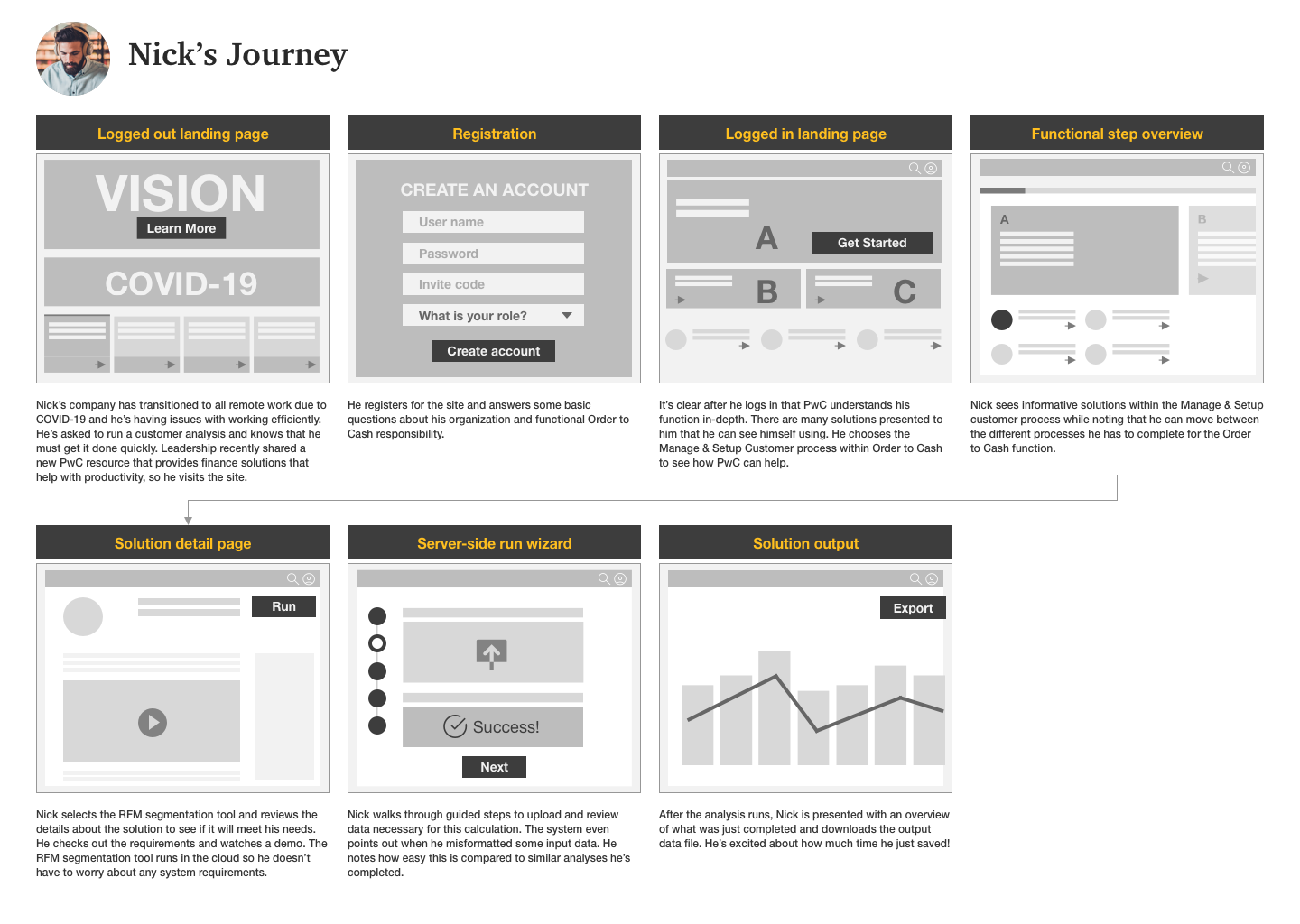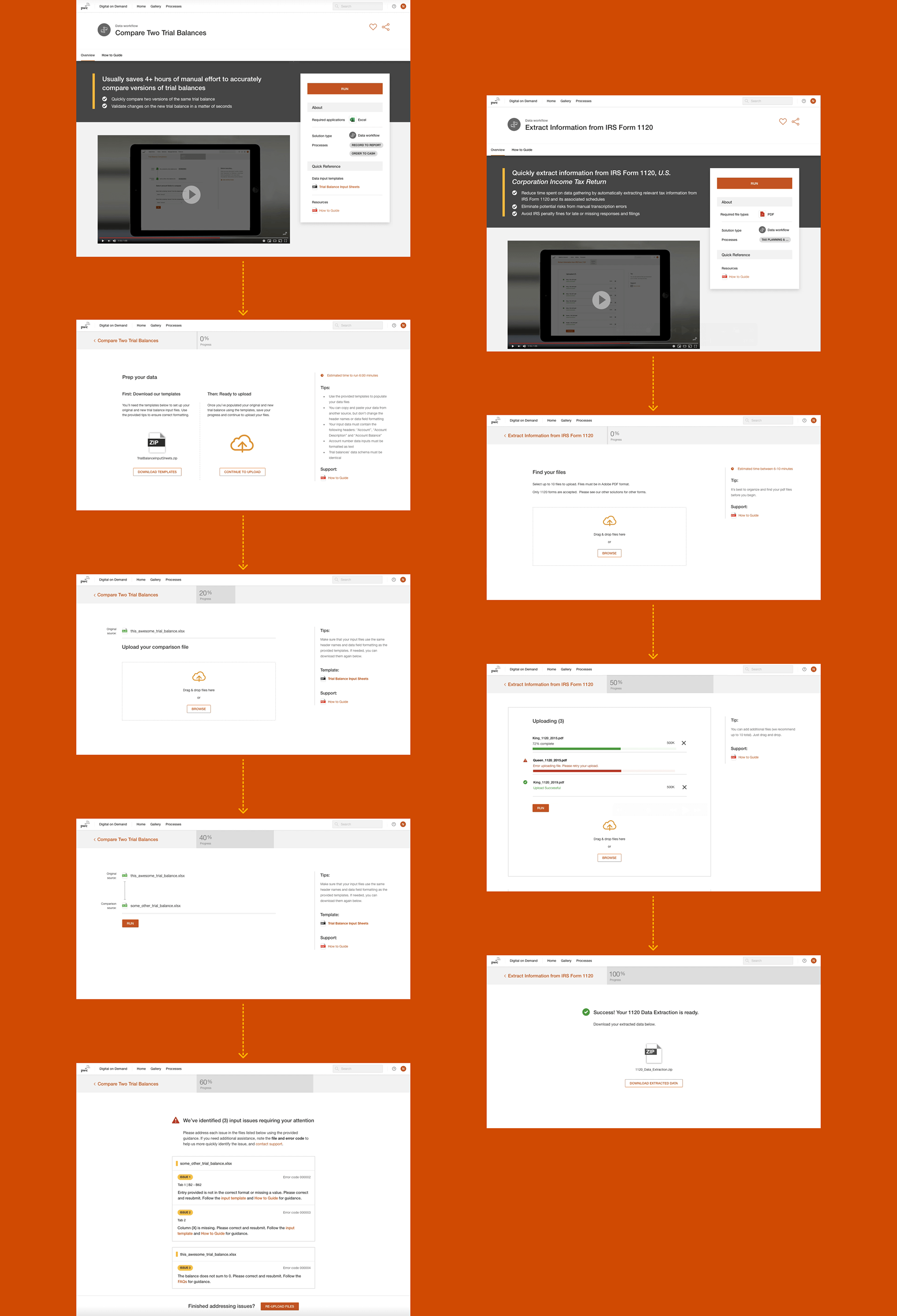 Following the success of a digital transformation initiative at PwC, there was an opportunity to share the wealth of automations that had been developed internally with our external clients. These digital assets were built leveraging PwC’s technical and functional domain expertise. The challenge was to productize what had thus far been a high-touch service offering, providing real value and time saving benefits to teams at scale in an easy-to-use self-service package.